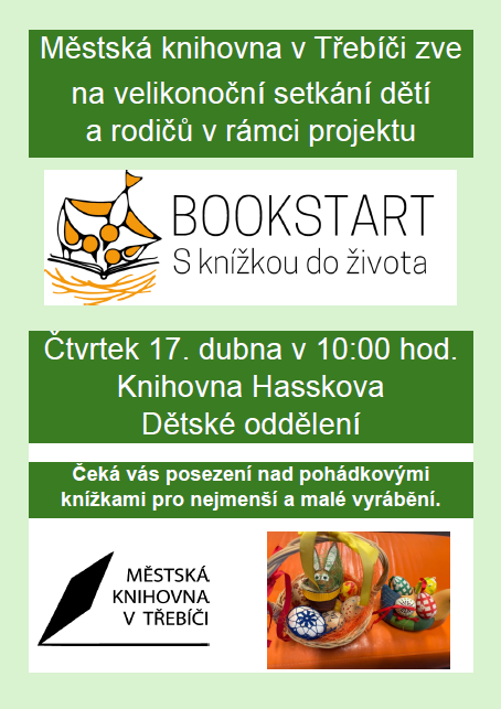 Městská knihovna v Třebíči si pro malé čtenáře pripravila ve spolupráci s BOOKSTART Velikonoční setkání.
